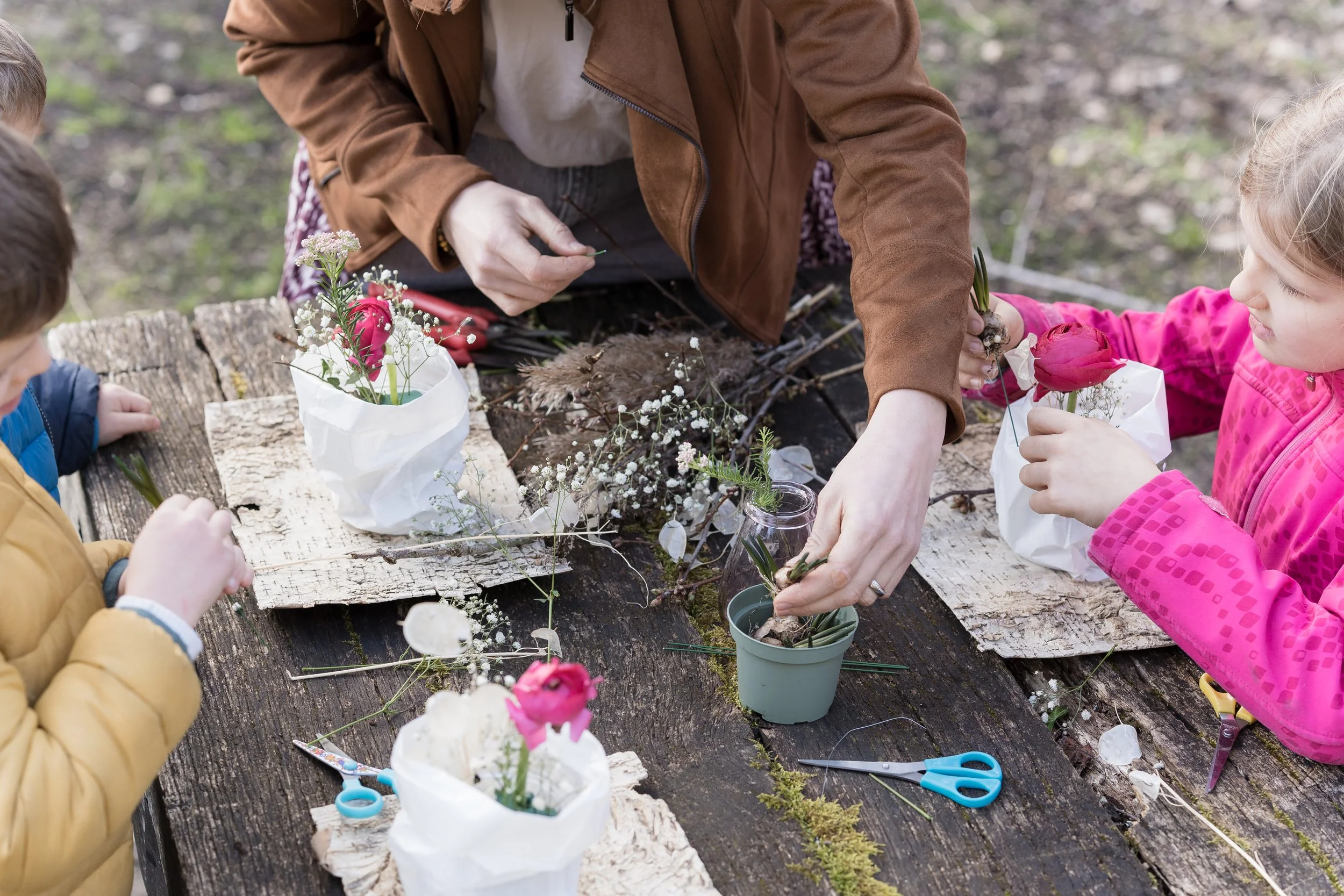 Travailler des végétaux puis laisser sa créativité s’exprimer avec les décorations qui feront briller leurs yeux.